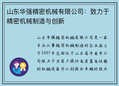 山东华强精密机械有限公司:致力于精密机械制造与创新