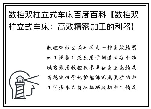 数控双柱立式车床百度百科【数控双柱立式车床:高效精密加工的利器】